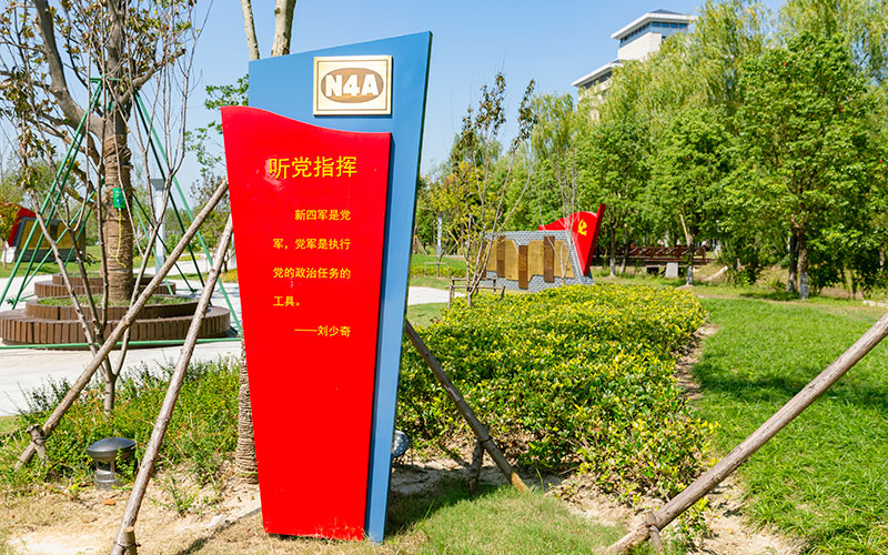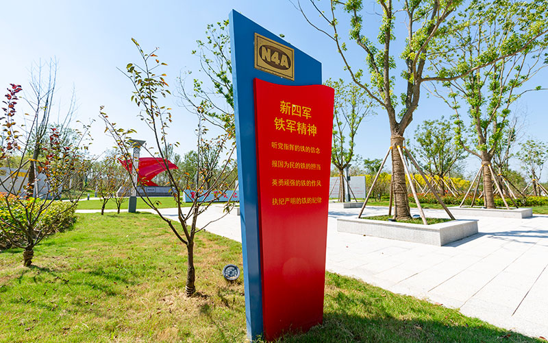 新四軍文化林,位于鹽城經(jīng)濟(jì)技術(shù)開發(fā)區(qū),北起團(tuán)結(jié)河,南至鹽瀆路,東側(cè)毗鄰鹽城市委黨校,西至通榆河河坎,總面積315畝,總投資約1億元,已于2021年4月竣工。新四軍文化林以自然林帶為背景,鐵軍文化為核心,整合四季景觀,追憶新四軍英雄史詩,通過“聽黨指揮、報國為民、英勇頑強(qiáng)、戰(zhàn)地黃花、執(zhí)紀(jì)嚴(yán)明、經(jīng)濟(jì)建設(shè)、團(tuán)結(jié)統(tǒng)戰(zhàn)、旌旗獵獵”八大版塊,以人物故事、感人事跡串點成線,通過開放、共享的休閑觀光形式向廣大市民和培訓(xùn)學(xué)員宣傳新四軍鐵軍精神和鐵軍文化,從革命歷史中感悟和汲取鐵軍精神的強(qiáng)大力量,以樹為碑銘記初心,以林為魂啟迪后人。